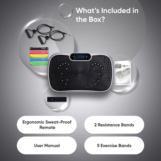 Vibration Plate Exercise Machine - 5 Programs + 99 Intensity Levels - Built-In Bluetooth Speaker - 2 Resistance Bands - Easy-To-Use & Portable Vibrating Plate Exercise Machine